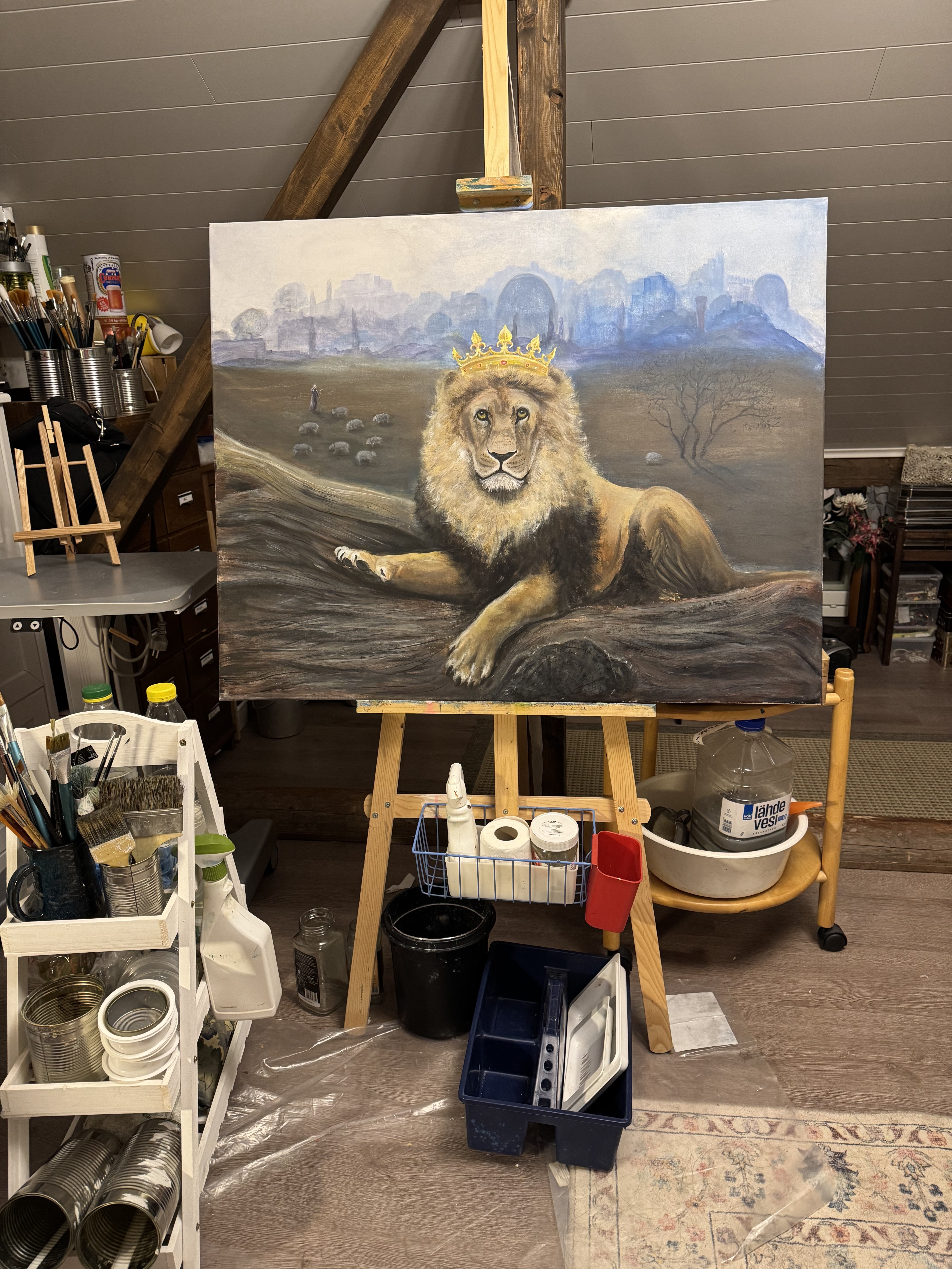 Kuningas hallitsee, (kuvassa osa maalauksesta), akryylimaalaus 2026, 120x100cm. Kuva aukeaa klikkaamalla suuremmaksi.