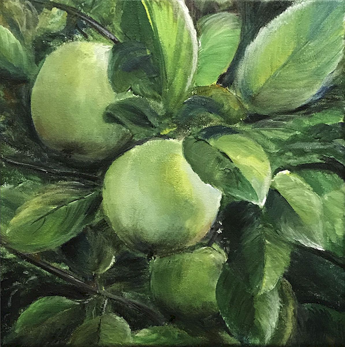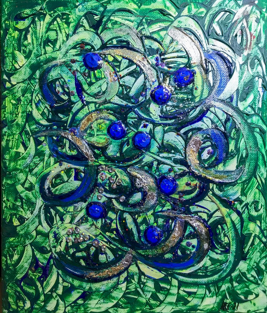 Kokeilin vaihteeksi taas vähän erilaista maalaustekniikkaa akryylisiveltimillä niin, ettei pohjavärin päälle maalattu uusi maalikerros ollut vielä kuivunut ja akryylisiveltimillä poistin osan päällimmäisestä maalista. Lopputulos oli kuultava ja grafiikkamainenkin.