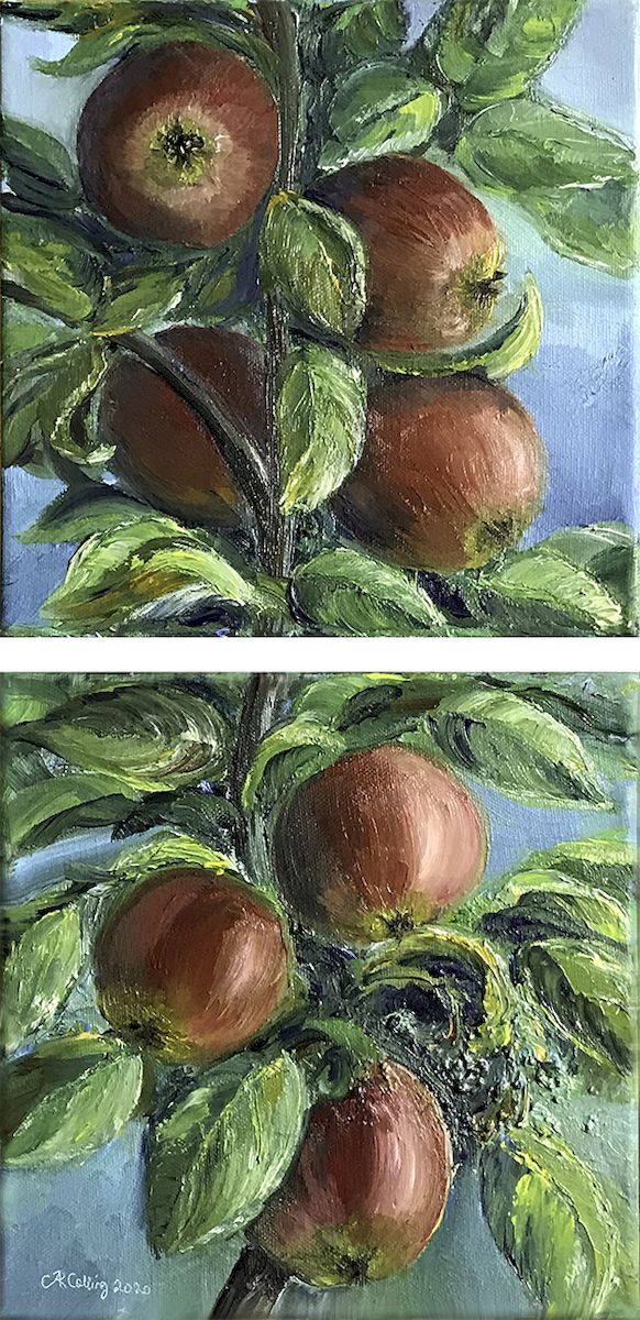 Lisäsin useimpiin maalauksiin kuvauksen mitä tunteita tai ajatuksia liittyy maalausprosessiin.